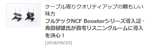 今回、フルテック様からNCF Booster Signalをお借りする機会を得ることができましたので、レポートさせていただきたいと